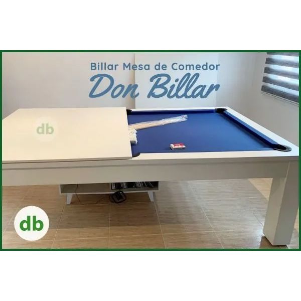 - Mesa de billar que se le puede incorporar una tapa en dos piezas y se transforma en una amplia mesa de comedor o de salón.